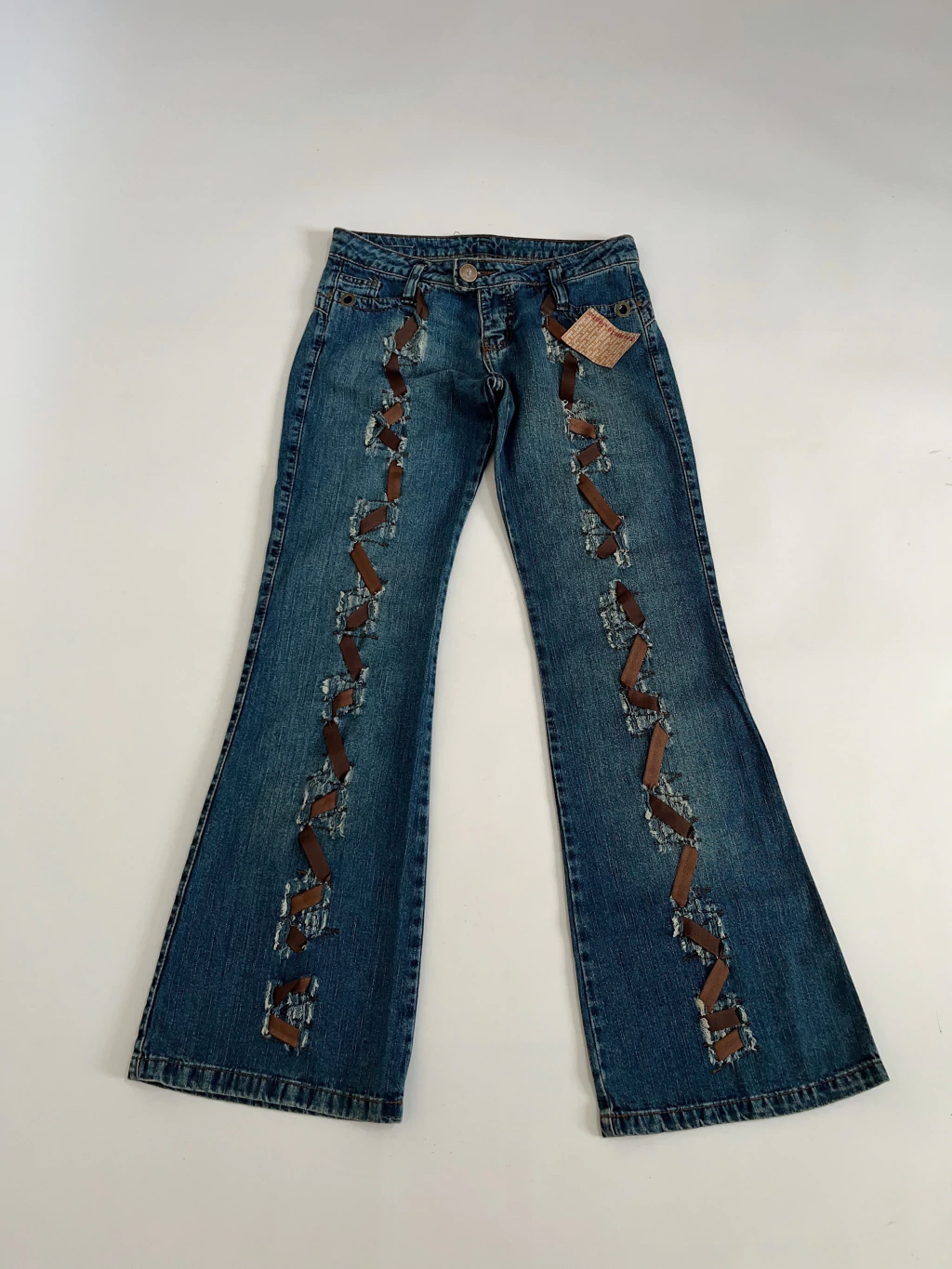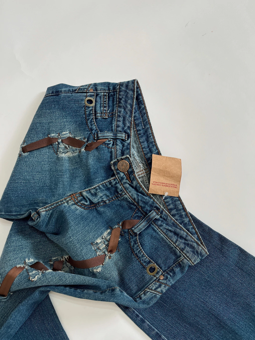 Calça jeans baixa destroyed flare lace - 34/36